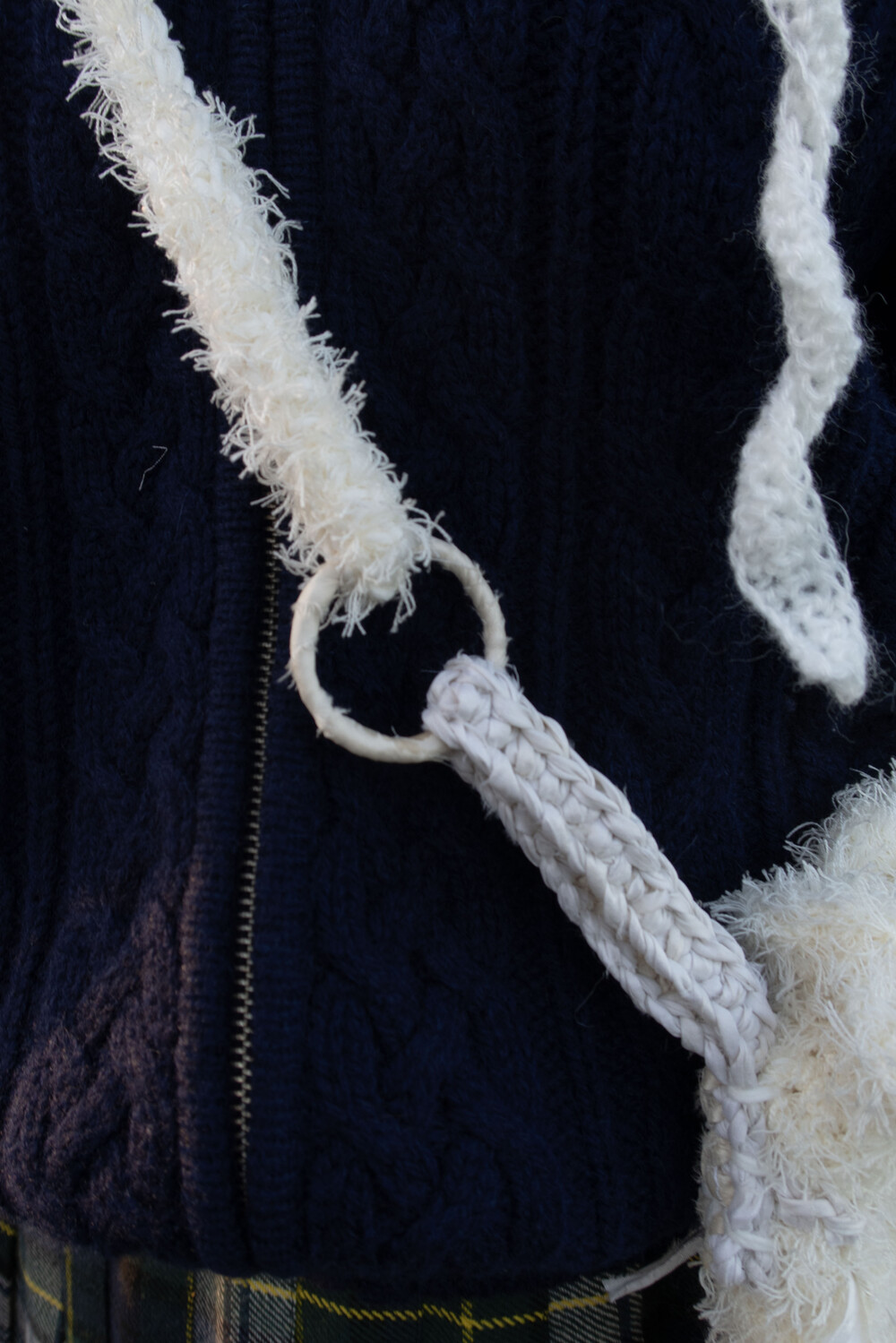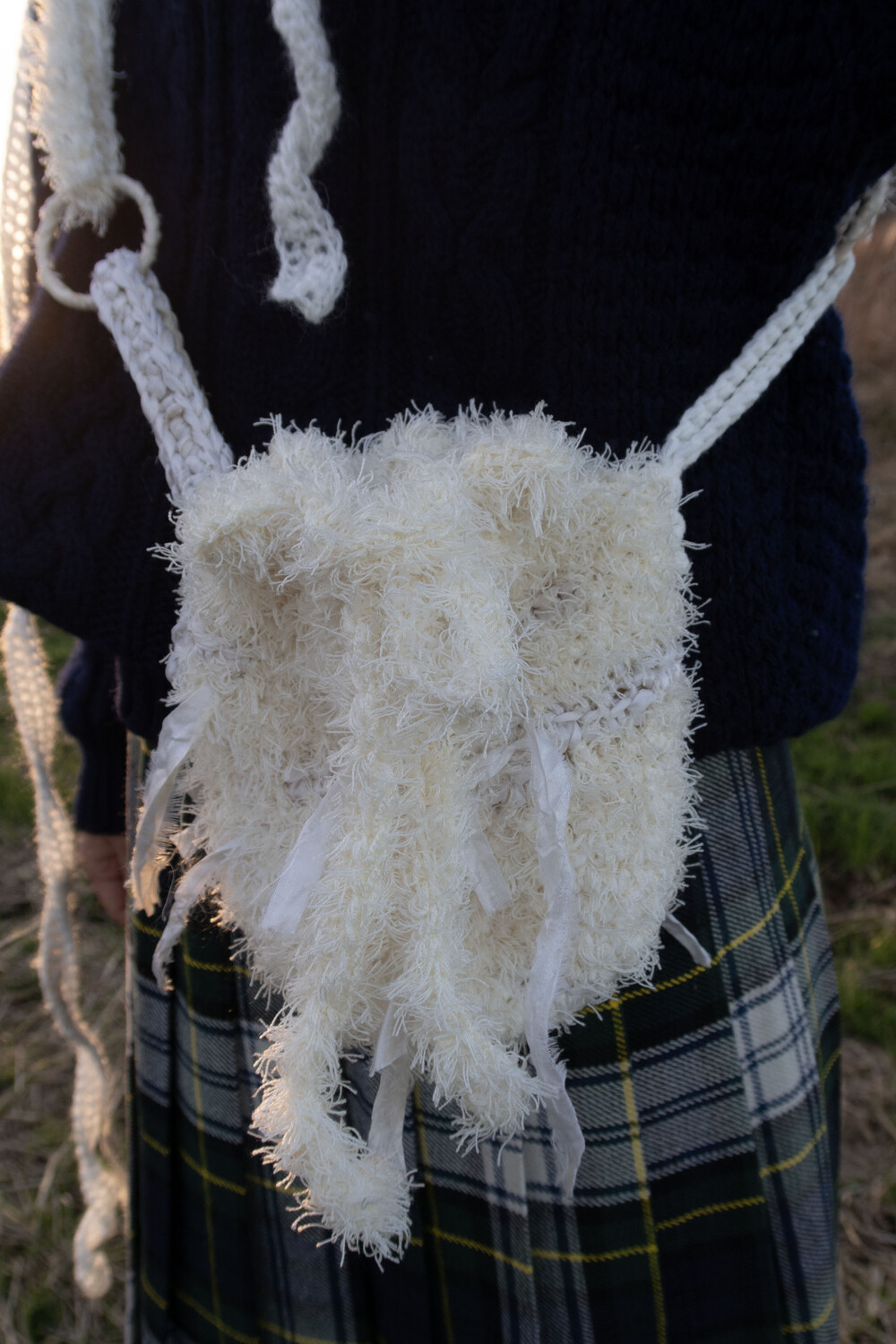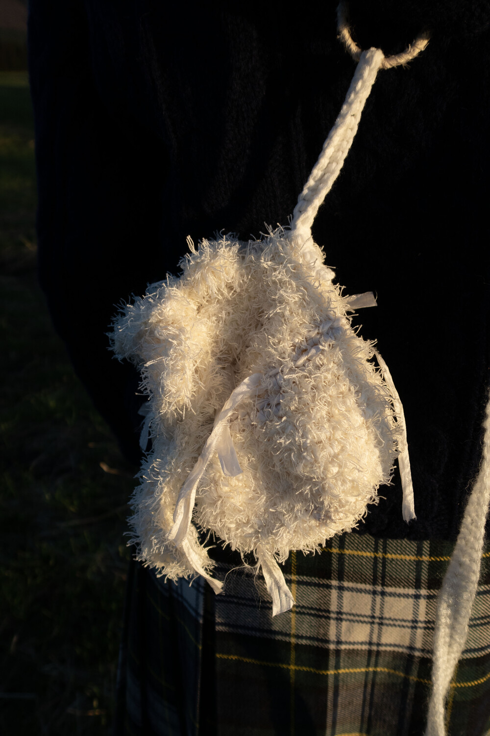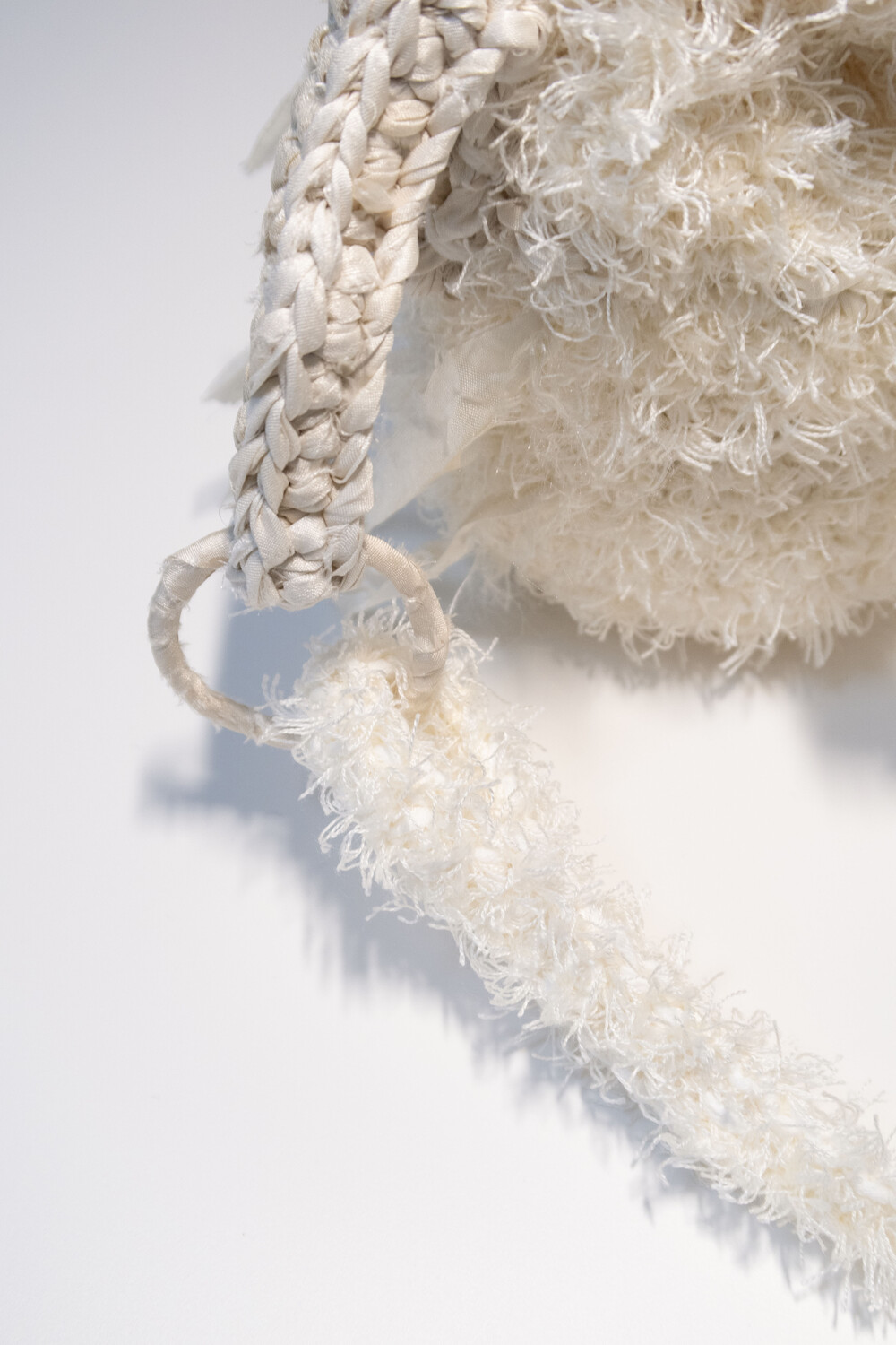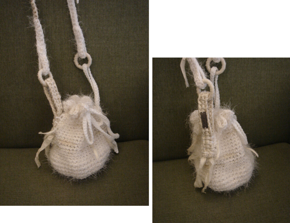 동그란 링에 손으로 직접 실크를 말아 가방 이음새를 만들어주고, 어깨로 이어지는 끈에도 실크를 이용해 포인트를 주었습니다.