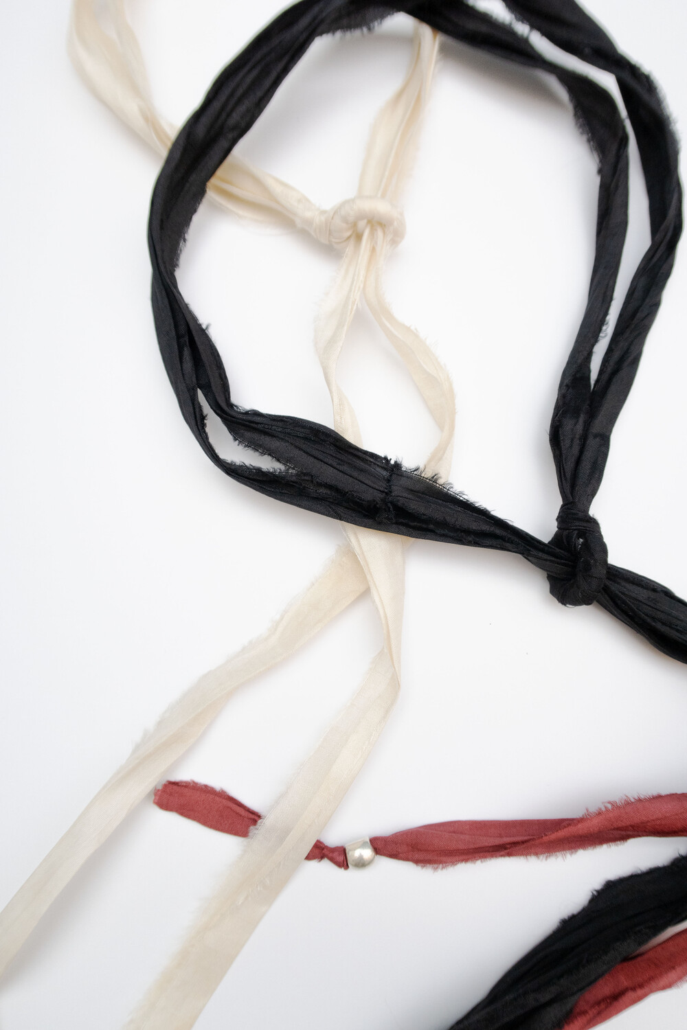 목 부분엔 두 줄로 실크가 레이어드되어 더욱 풍성한 포인트를 줍니다.