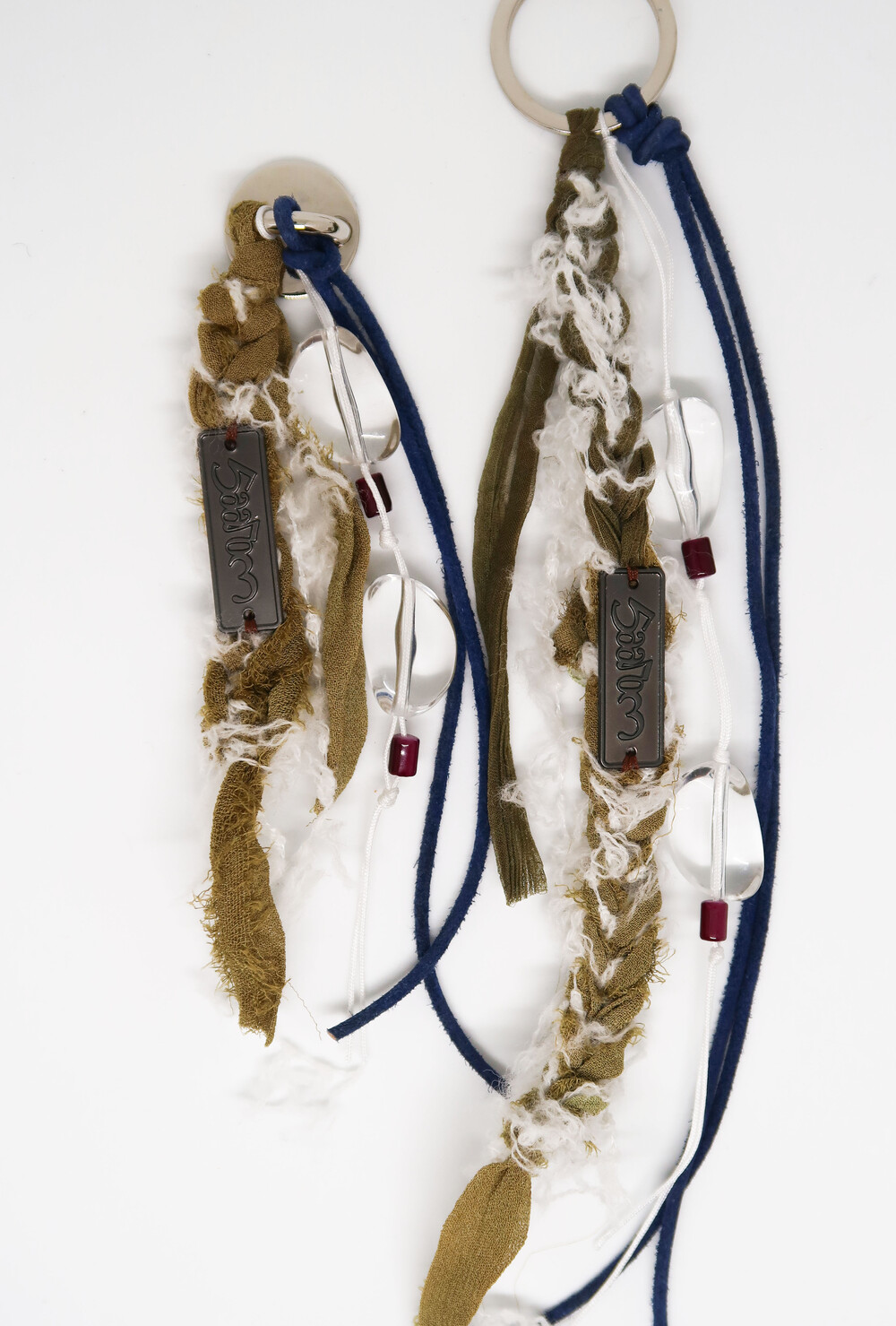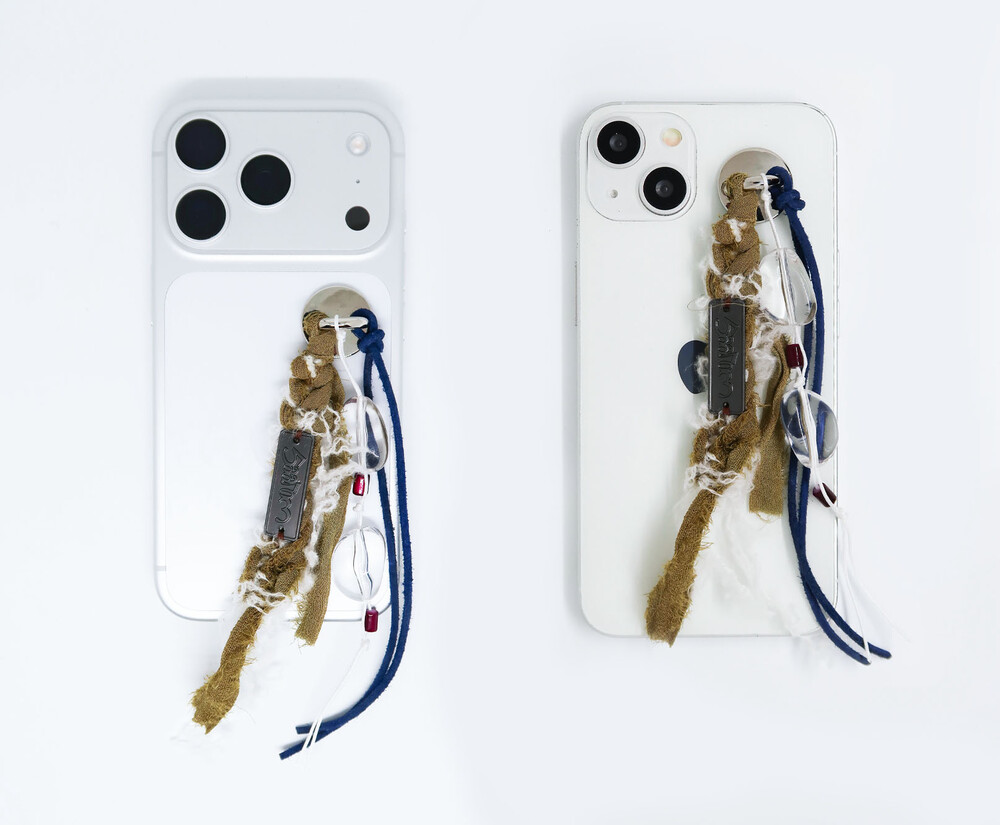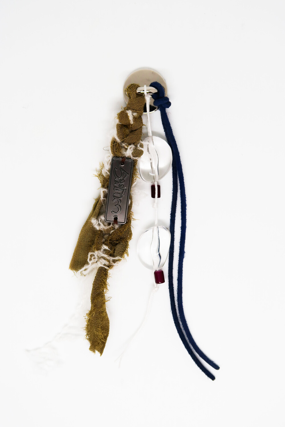 투명한 원석은 새하얀 눈 조각들이 빛을 받아 반짝이는 순간을 표현하며, 카키 컬러의 실크는 겨울 숲의 향을, 푸른 색의 스웨이드 끈은 차갑고 선명한 겨울 하늘을 담았습니다.