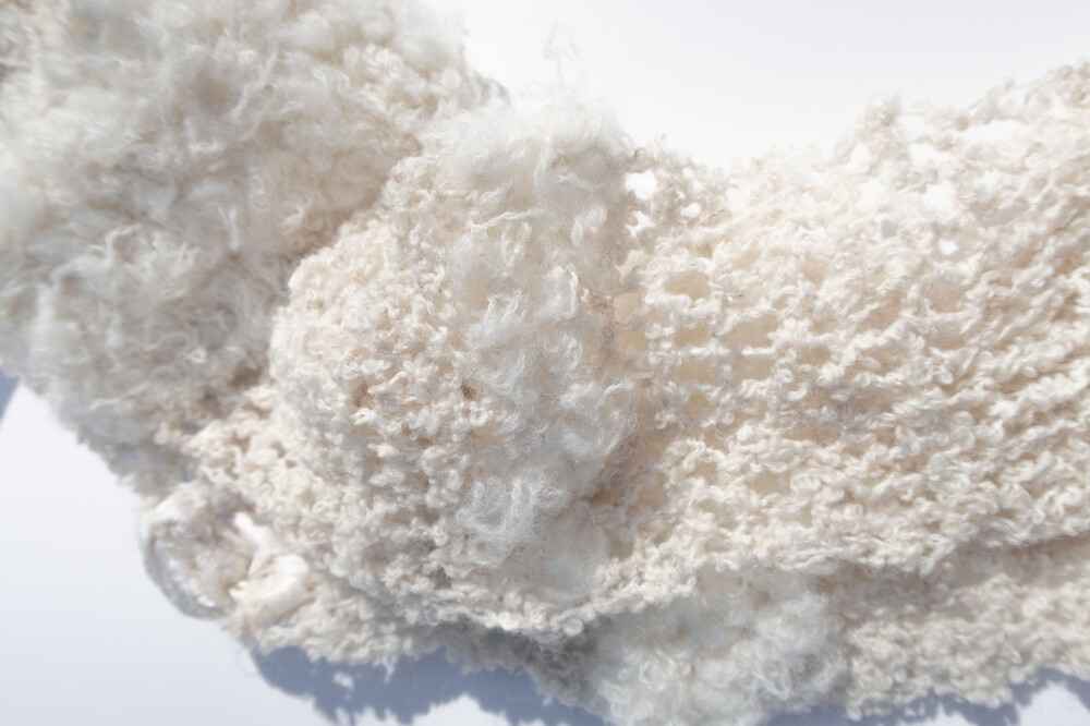 실크와 헤어리한 실들이 스트라이프처럼 수 놓아져 있습니다.