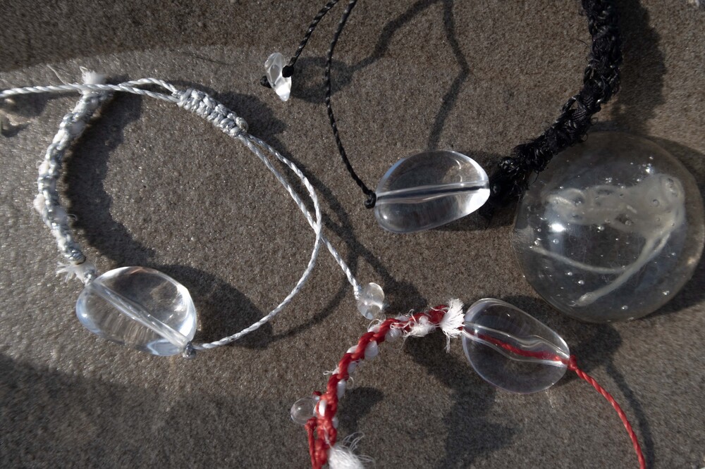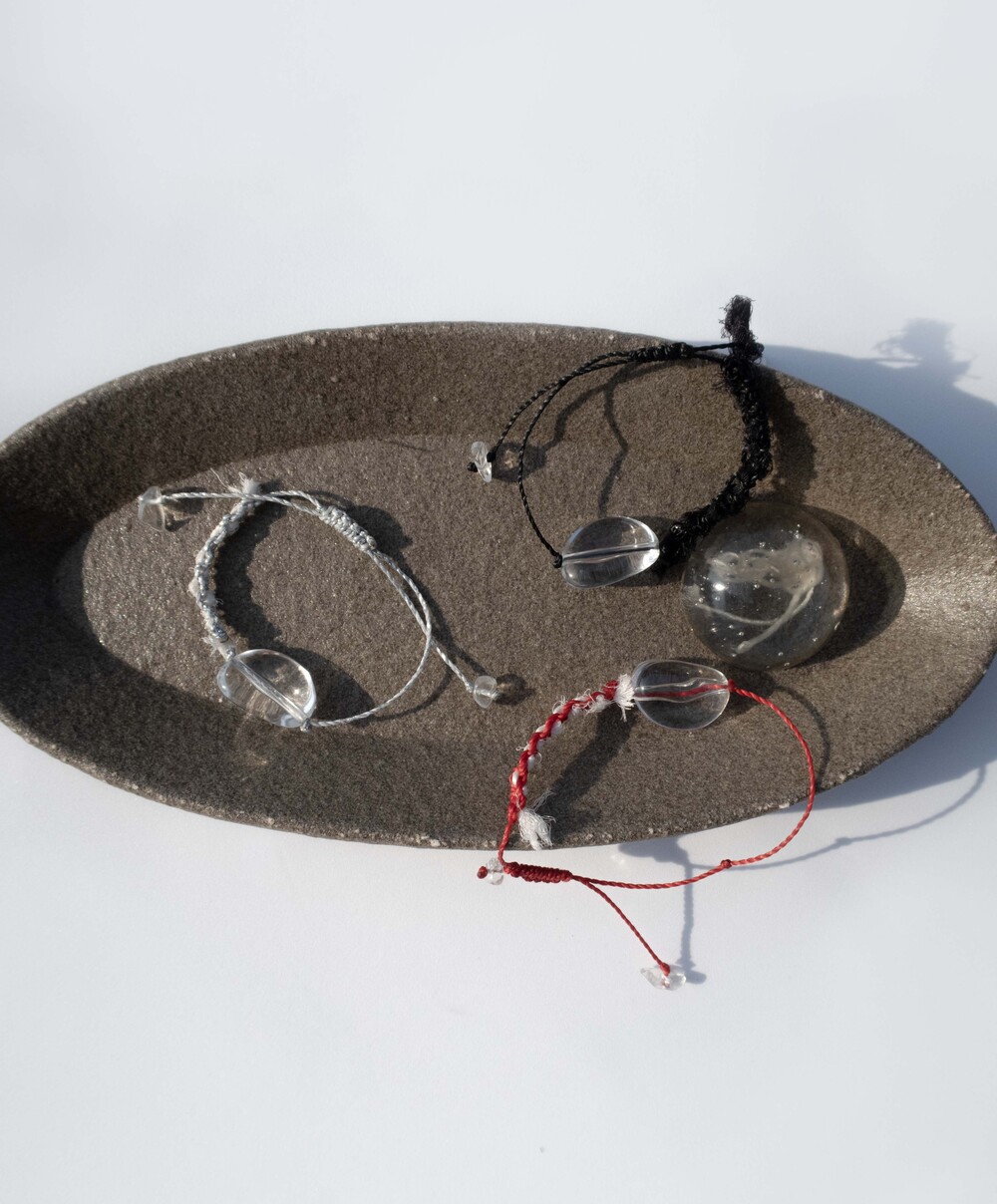 투명한 비즈에 따사로운 햇빛이 닿을 때면 반짝이는 윤슬처럼 잔잔한 빛을 선물해주는 사롬의 첫 번째 팔찌입니다.